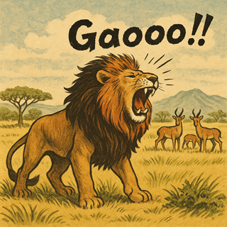 Japanese onomatopoeia tends to amplify drama and feeling, so “Gaoo” sounds more like a stage performance of a lion’s might.