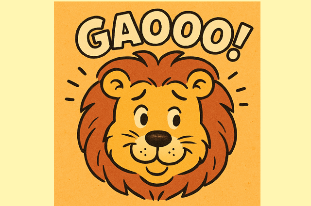 But in Japanese, the mighty cry of a lion is often written as — Gaoo!