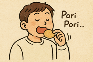 But in Japanese, “pori pori” gives you the sound-and-feel image — you can almost hear the brittle crispness or see the tiny repeated movement.