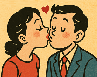 - A couple leaning in for a shy peck.