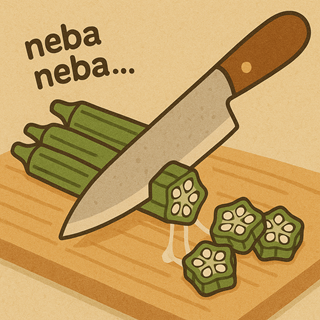 The knife sliced through the green pods, and slimy threads appeared — neba neba…