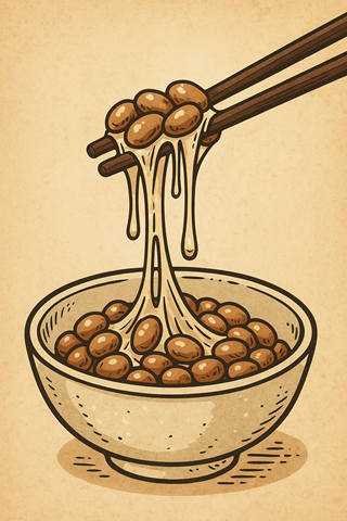 Natto is made by fermenting soybeans with Bacillus subtilis, giving it a strong smell, a unique flavor, and those stretchy threads that cling to chopsticks.