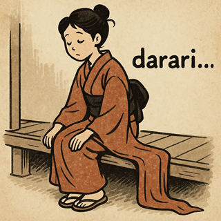 “Darari” is a Japanese onomatopoeia that describes a state of something long, soft, or heavy hanging down loosely — often with a sense of lifelessness, exhaustion, or elegance.
