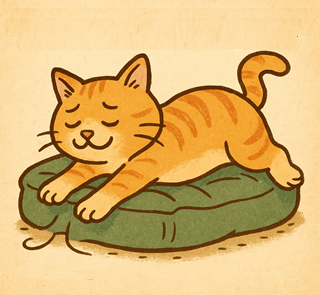 The cat stretched and melted into the cushion — funya funya…
