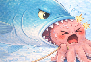 Like a bear catching a fish in its jaws.
