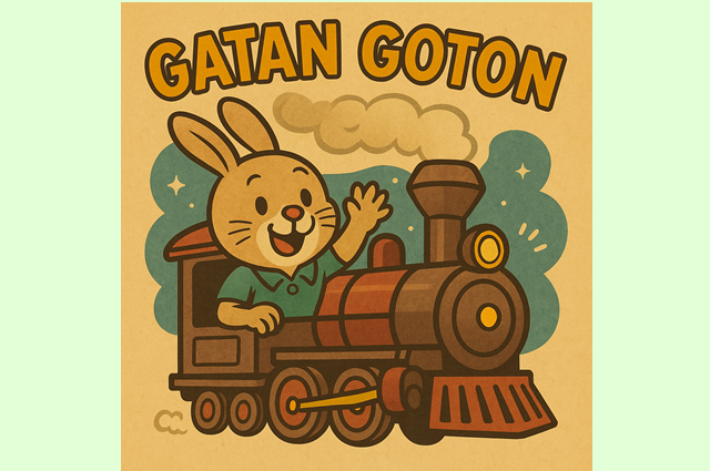 “Gatan goton” is a Japanese onomatopoeia that represents the rhythmic clatter of a train running on its tracks.