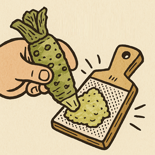 “Wasabi” (わさび) is the spicy green paste you put on sushi.