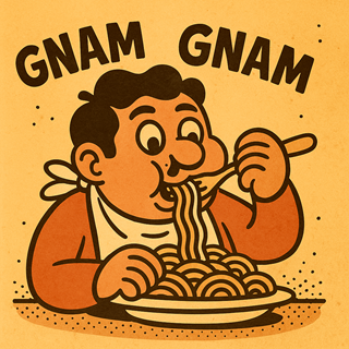 - gnam gnam — eating sounds (like “yum yum”)