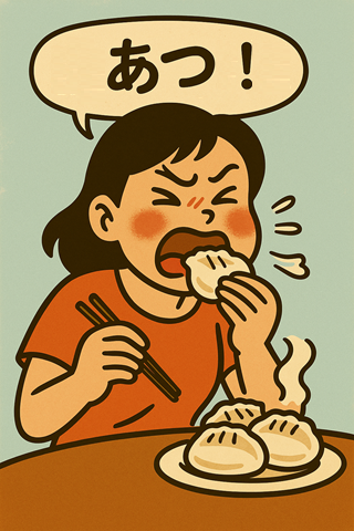 That’s when the Japanese onomatopoeia “Atsu Atsu” (あつあつ) steps in — it expresses the sensation of something piping hot, especially food or warm items like heating pads.