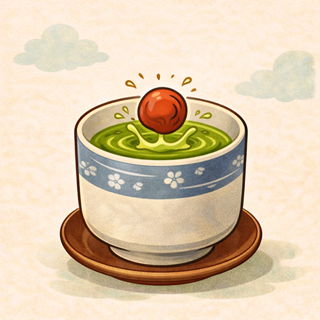 In English, you might say “plop” — but pochan feels softer and rounder, like a moment caught in slow motion.