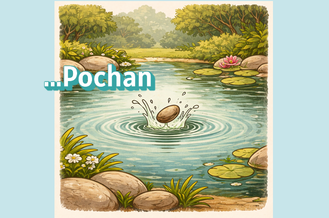 “Pochan” is a Japanese onomatopoeia that represents the small, clear sound of something dropping into water.