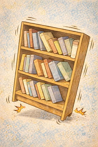 The earthquake made the bookshelf shift —
