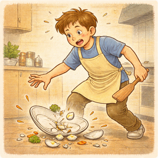 A plate slips. A glass falls. A bike topples over.