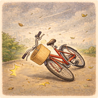 Like a bicycle falling against a pole.